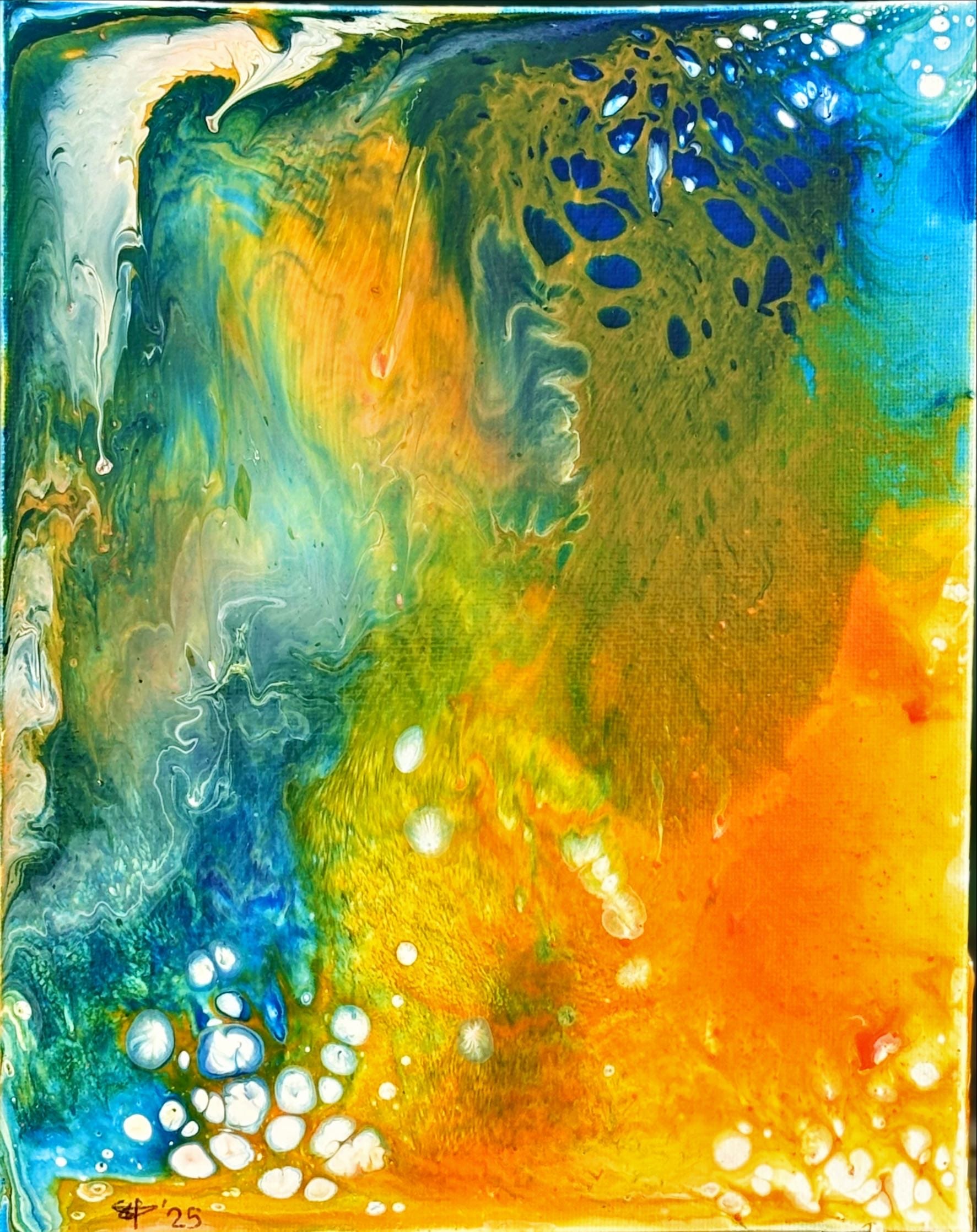 This painting came secondary to an unpublished piece. The impulsivity in this 25 x 30 cm canvas was captured in a moment of passion for creating, a passion for feeling.